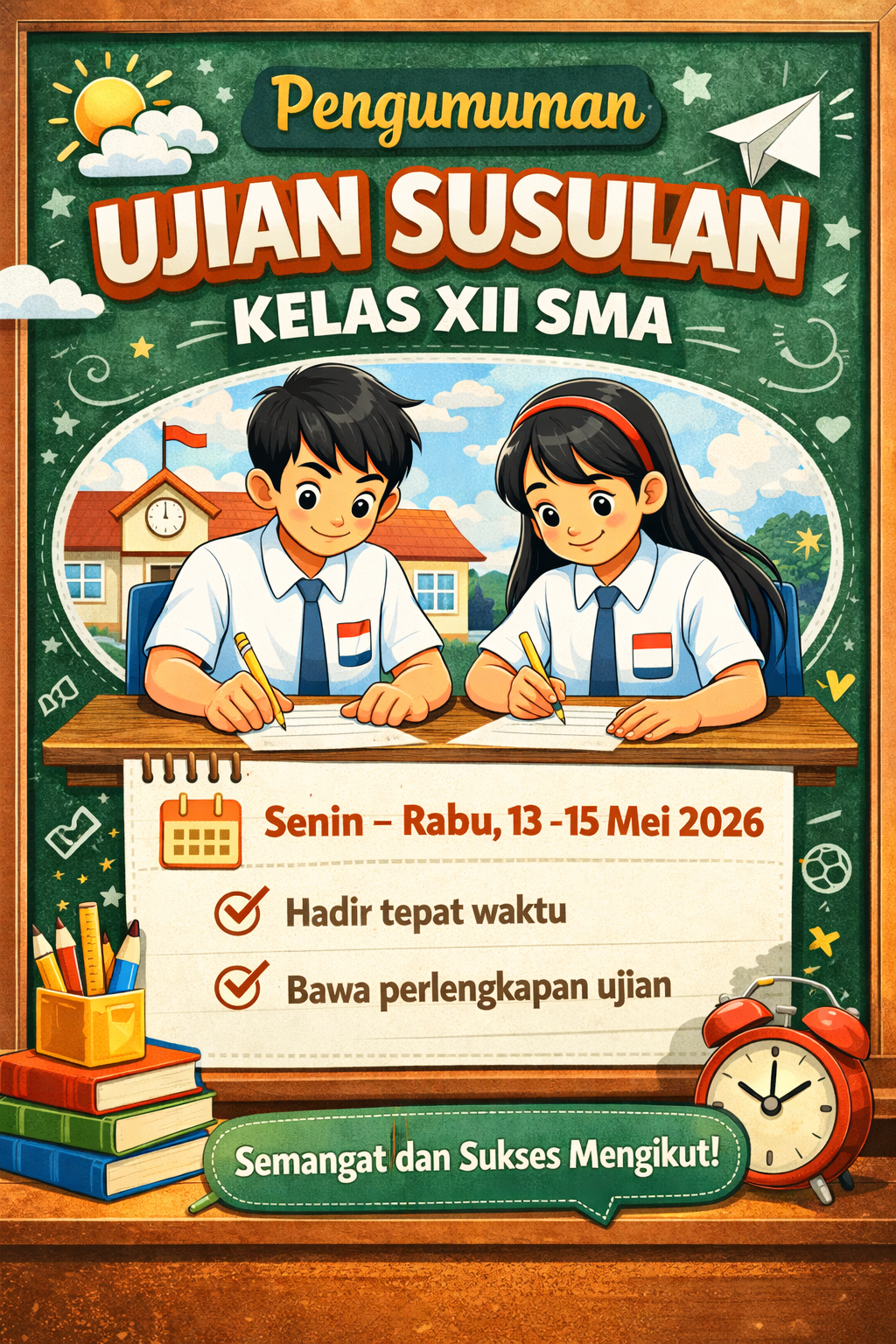 Kelas XII telah selesai mengerjakan Asesmen Sumatif Akhir Jenjang tahun ajaran 2025/2026. Mulai hari Senin tanggal..